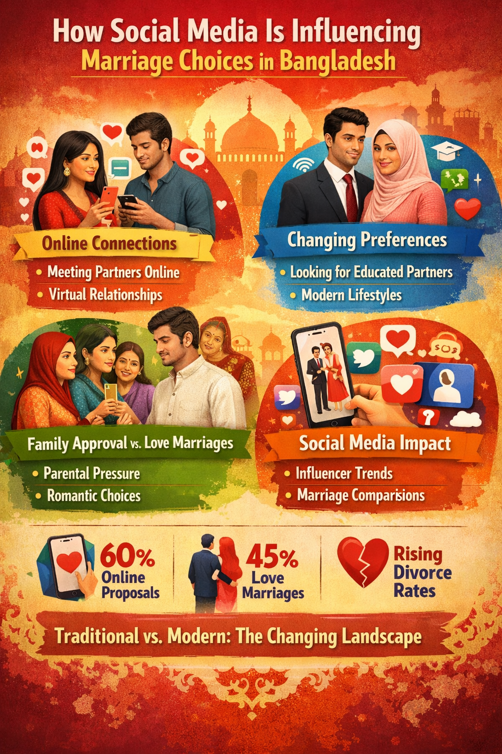 In this article, we will explore in depth how social media is influencing marriage choices in Bangladesh—covering trends, benefits, risks, psychological impacts, and what it means for the future of relationships.